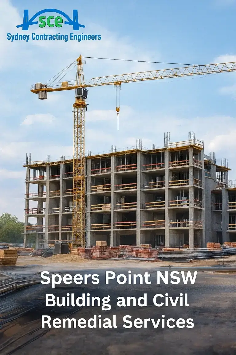 SCE Corp delivers expert Remedial Services, Building Services and Civil Services for properties throughout Speers Point NSW 2284. This established suburb features residential apartments, commercial buildings, strata complexes and community facilities that require professional assessment, maintenance and construction support. Our experienced team assists property owners, strata managers and residents with challenges including Water Ingress Services, Concrete Cancer Services, Concrete Cracking Services, Subsidence Services, Building Refurbishment, Structural Failure Services, Structural Remedial Services, Building Remediation Services, Concrete Remedial Services, Emergency Remedial Building Works. From initial investigation through to project completion, SCE Corp provides reliable solutions that protect long term property value for the Speers Point community.