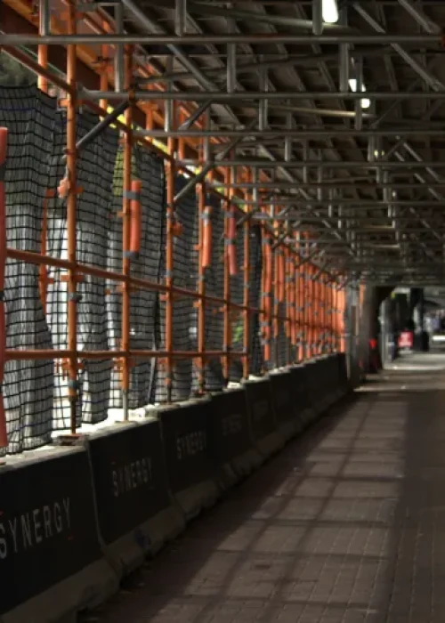 - The hoarding is then reinforced with secure joints, safety features like signage or reflective strips and, if necessary, anti climb measures. Routine inspections help maintain structural integrity throughout the project.