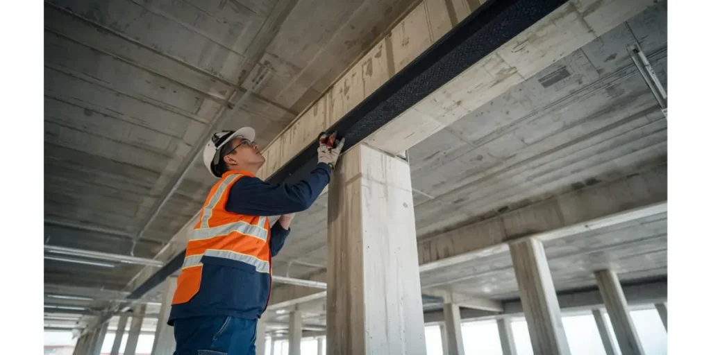 - High strength carbon fibre strips bonded to concrete beams, columns, and slabs